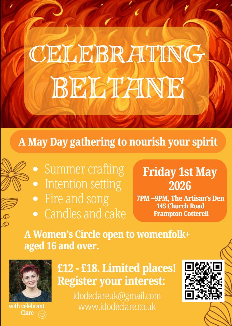 Hello! Thank you for your interest in joining. My name is Clare and I am a facilitator of ceremony, ritual and celebration. If you have any questions about this event please feel free to email me on idodeclareuk@gmail.com. To learn more about me please visit www.idodeclare.co.uk. Or feel free to call, my number is 07405 115908.